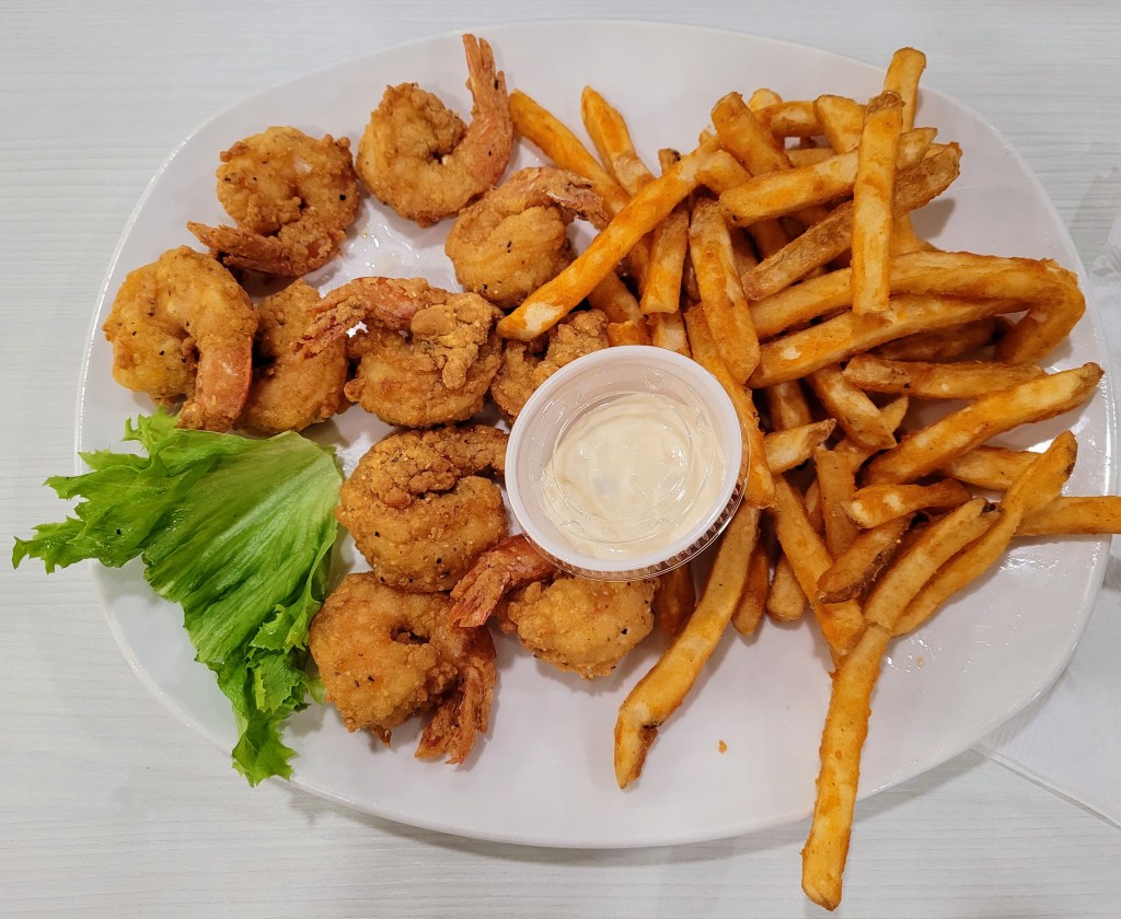 My daughter Alex had fried shrimp with French fries. These were not your Applebee’s small Asian shrimp. These were jumbo shrimp, probably gulf, and they were delicious! The fries were hot and tasty, crispy on the outside and soft on the inside.